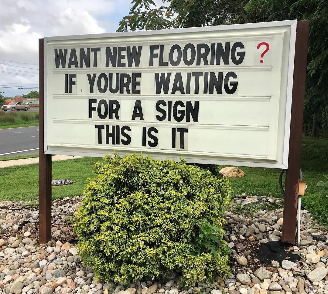 The Petersen's Carpet & Flooring sign has been a landmark in Frederick, MD for many years. It's more than just a storefront; it's a symbol of our commitment to quality, community, and providing exceptional customer service. Known for its playful messages and community-focused announcements, the sign has become a local favorite.